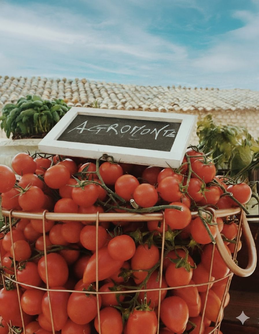 Agromonte 位於義大利西西里島的基亞拉蒙泰—古爾菲(Chiaramonte Gulfi)市鎮,坐落於日照充足、溫差大的地中海氣候區。家族自有廣袤農園,依循季節聘用25至150名員工,從溫室育苗、授粉、生長管理到人工採收,每顆番茄都經過專家每日巡視,確保風味、甜度與香氣臻至完美狀態之際,再以人工逐一採收。