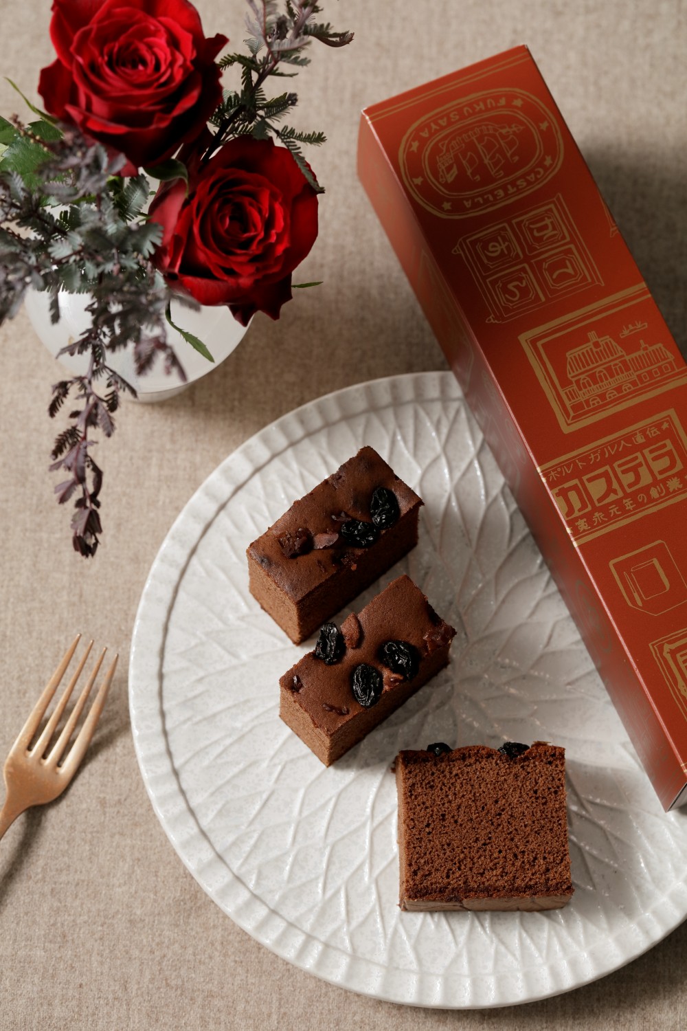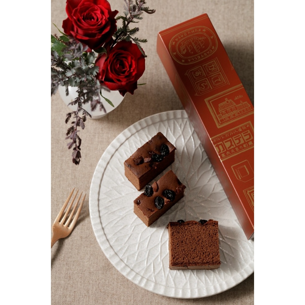 在傳統長崎蛋糕的製法基礎上,加入品質出色的可可粉,並於表層鋪上胡桃與葡萄乾一同烘烤,使風味層次更為豐富。入口時可感受到溫潤柔和的甜味,隨之展開的是巧克力的香氣與堅果、果乾交織而成的口感變化,整體節奏平衡而不張揚。香氣飽滿、口感細緻,是一款無論大人或孩子都能輕鬆享用、同時展現福砂屋另番風情的美味點心。