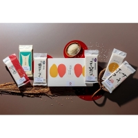 本款「栗屋特選米禮盒」為富興米店與日本栗屋獨家合作企劃,由富興米店依據台灣送禮文化與實際食用習慣規劃組合,提供「3入組」與「6入組」兩種組合。每包皆為 300g 產地銘柄米,可自由搭配不同產區與品種,兼顧份量彈性與風味完整性。