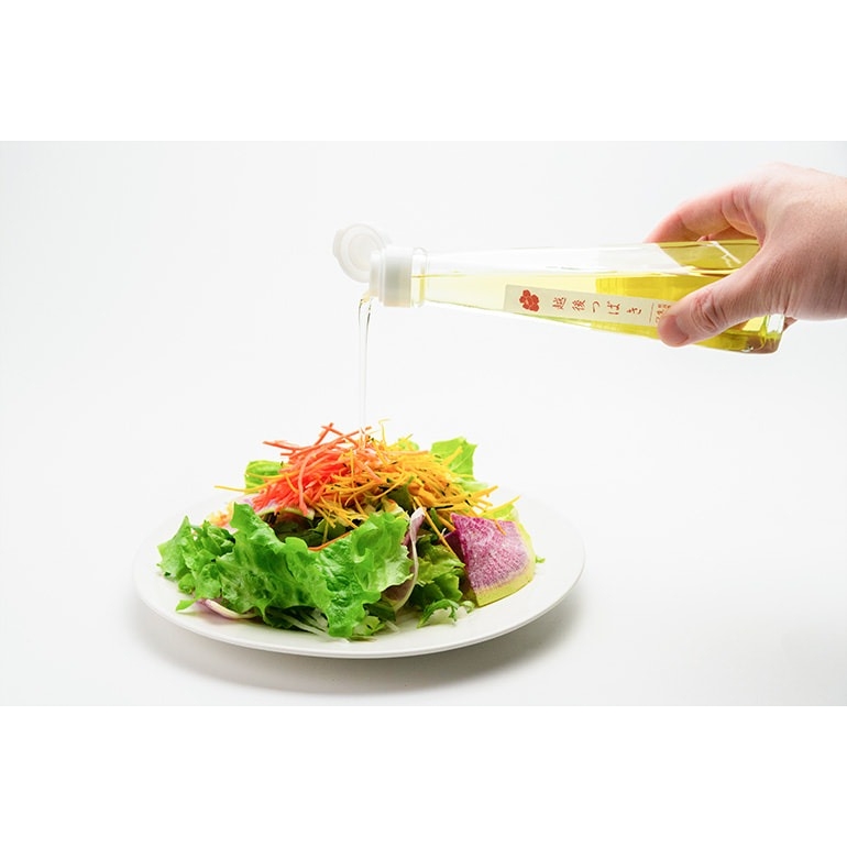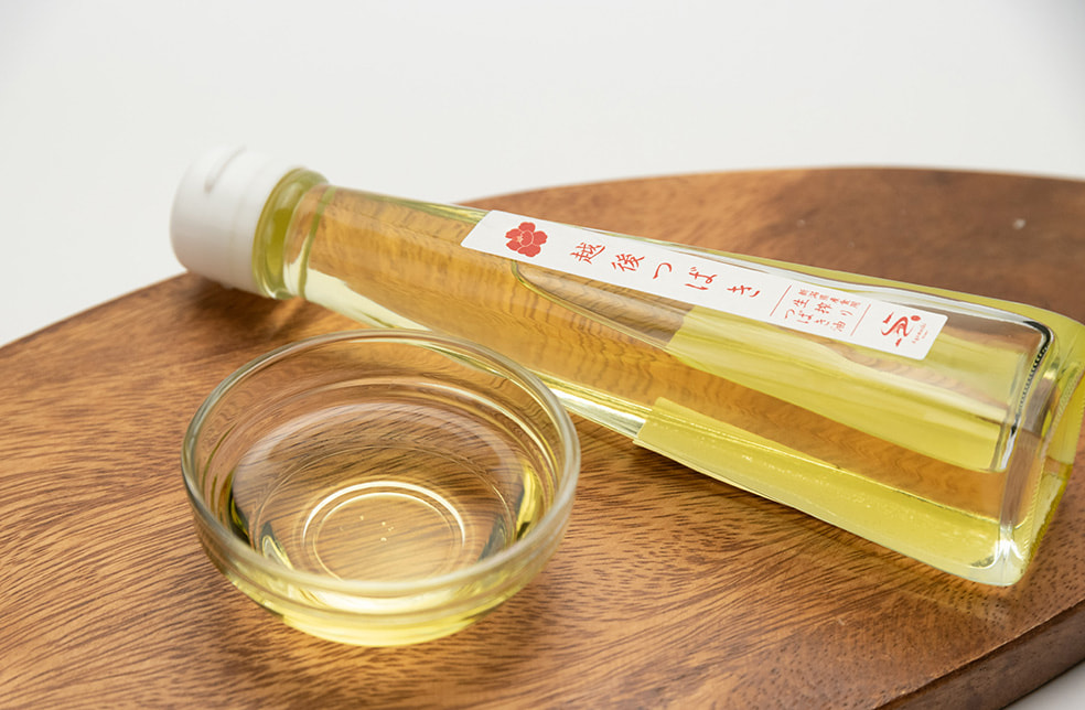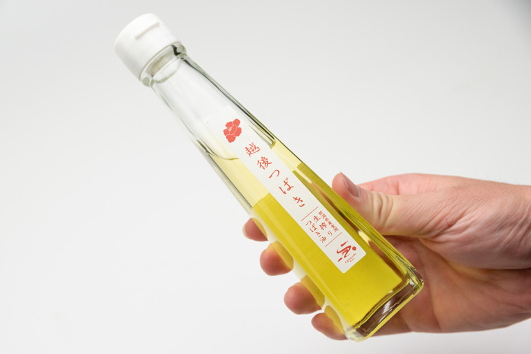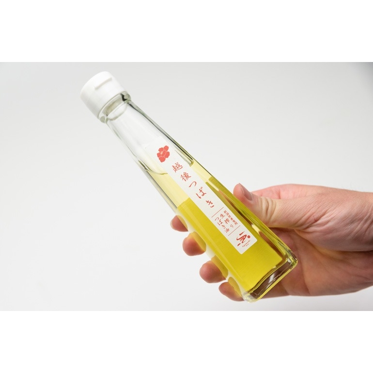 本款山茶籽油選用新潟縣嚴寒冬季孕育而成的「越後椿」果實為原料,由福利機構的夥伴們以細心與耐心逐顆手工採摘。製程上採用低溫壓榨方式,在高達65噸的壓力下緩慢取油,出油率僅約六成,卻能有效避免高溫對油脂造成破壞,保留對溫度敏感的營養成分。榨出的油脂再以高精度膜過濾處理,透過兩道不同孔徑的濾膜淨化,最細可達0.45微米,讓油質更加純淨穩定。