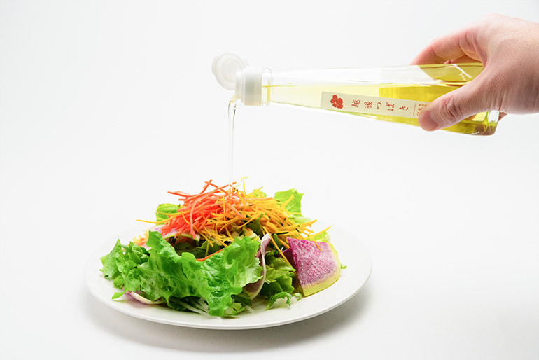 成品為純淨無添加的冷壓山茶籽油,油色清透質地細緻,入口清爽而不帶雜味。適合搭配麵包、沙拉,亦可用於日常拌炒或料理最後的風味點綴,能襯托食材本身的香氣與層次,是一款實用性高的出色好油。