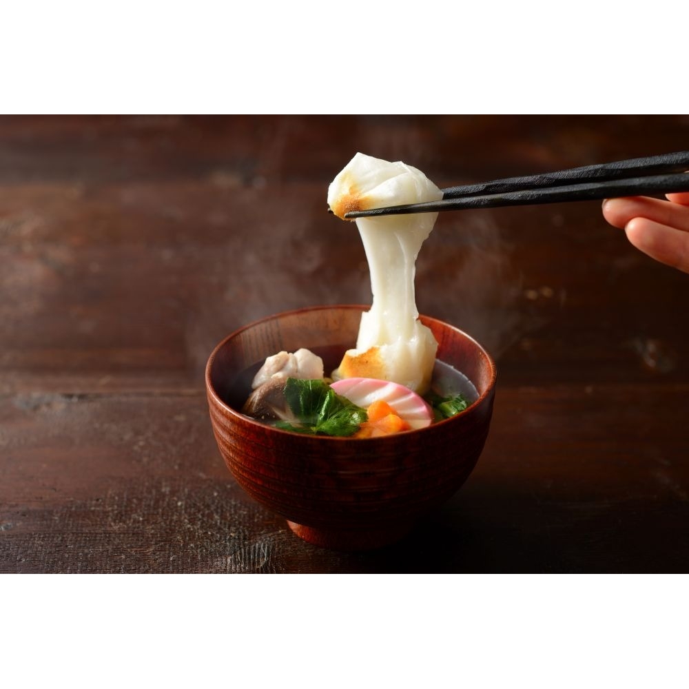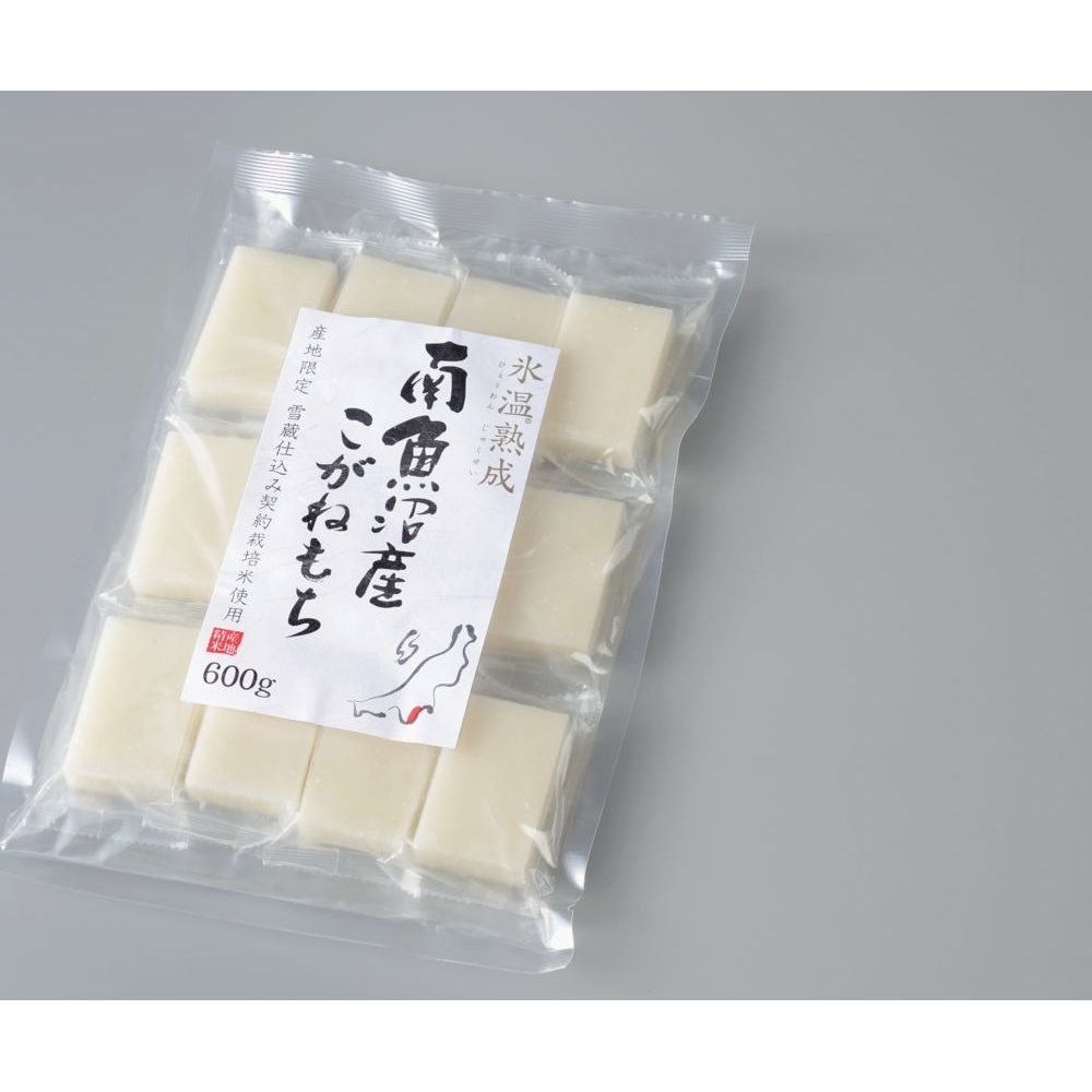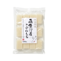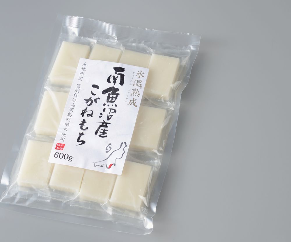 本款麻糬使用新潟縣南魚沼地區限定生產、被譽為「糯米之王」的「黃金糯米」(こがねもち)製作。其黏性極強且口感紮實有嚼勁,帶有糯米自然的甜味與香氣,做成年糕後滋味特別出眾,經過烹煮也不易糊爛。對於講究年糕口感與香氣的日本家庭來說,新潟縣產的黃金糯米麻糬,是過年祭祀與慶祝活動時的首要之選。